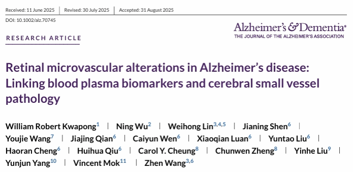 王贞Alzheimers & Dementia发文:Retinal microvascular alterati...