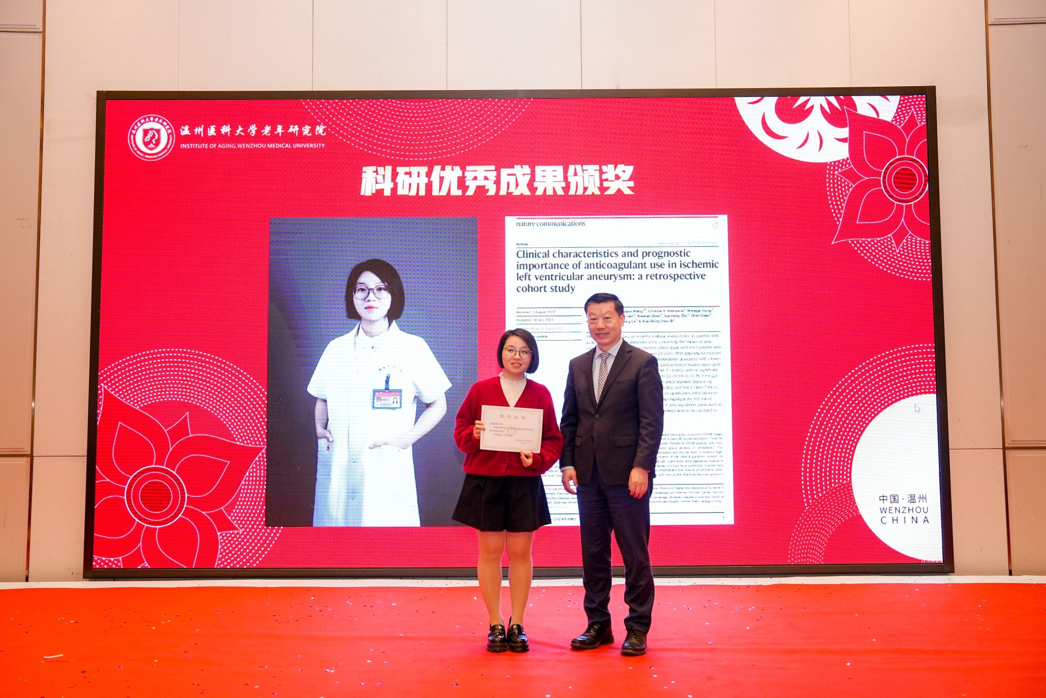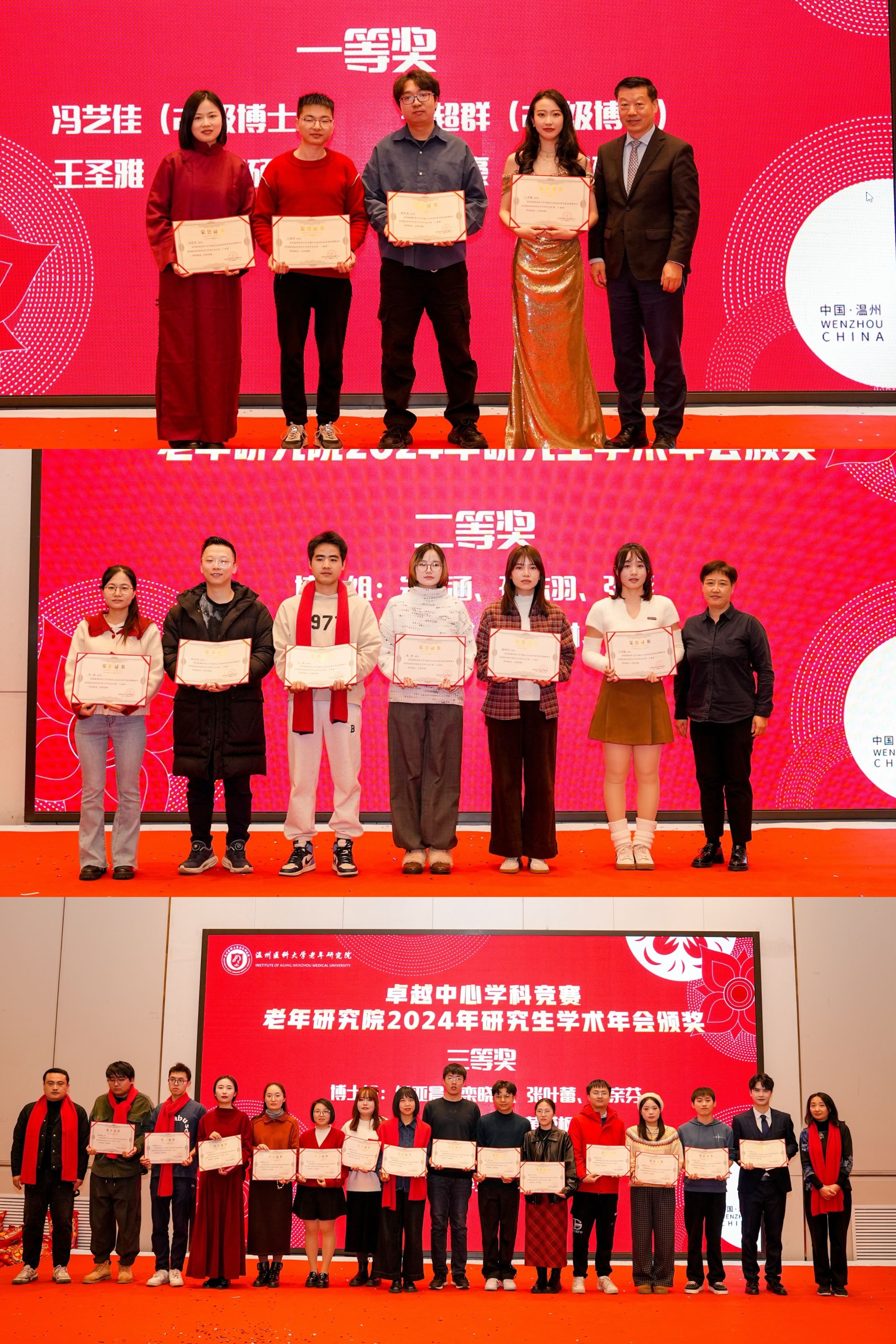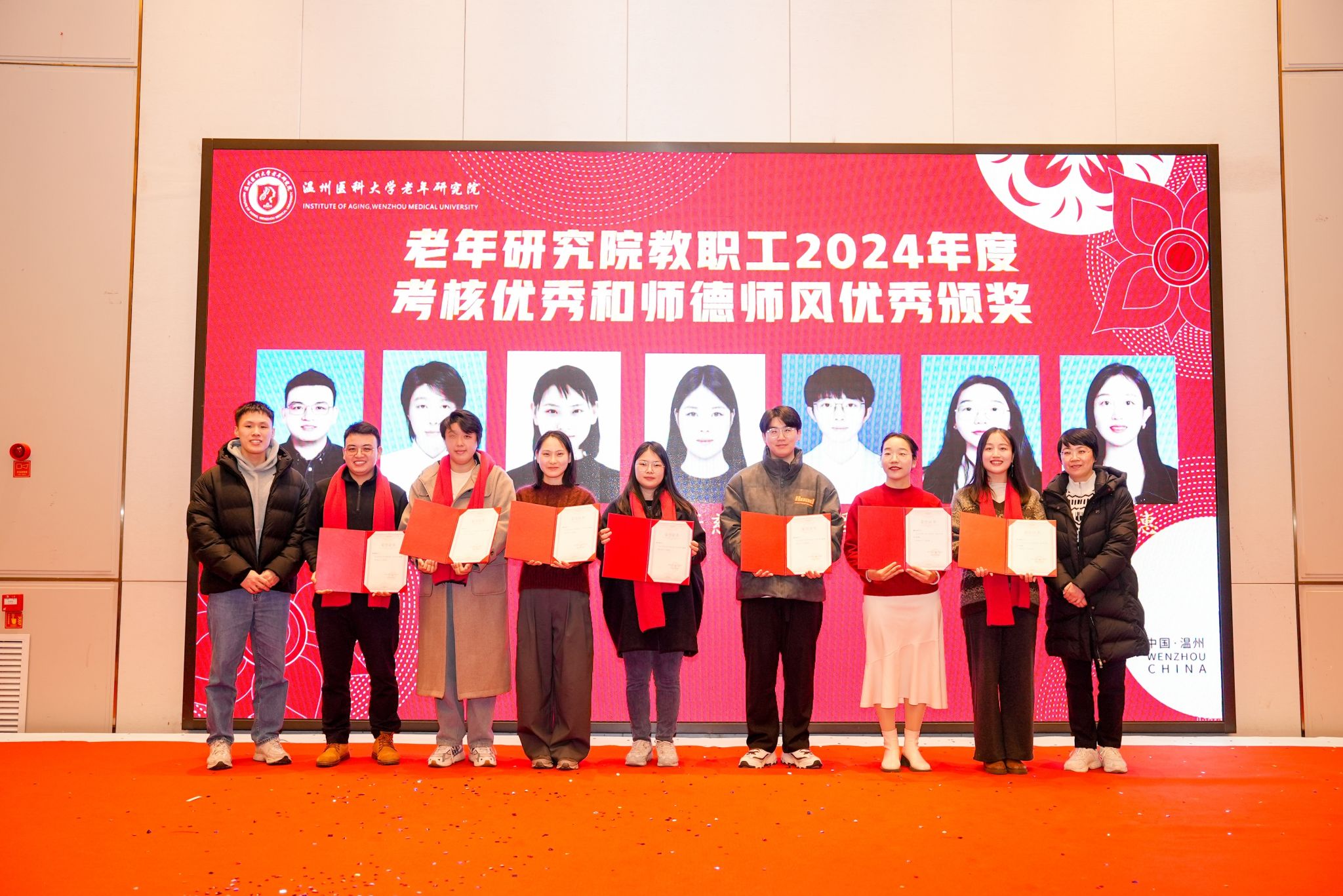 岁序常易,华章日新。回首过去的2024年,仿佛是一个生动的画卷,镌刻着无数的付出与汗水,也刻画出一笔笔辉煌的成就。为表彰在过去的一年中取得优异成果的老师与同学,老年研究院特此举办2024年度表彰大会。温州医科大学学术副校长、老年研究院院长宋伟宏院士、温州医科大学卓越中心副主任季好老师、卓越中心办公室副主任沙千里老师、老年研究院副院长吴伊丽教授、以及老年研究院副研究员和博士后老师们出席。