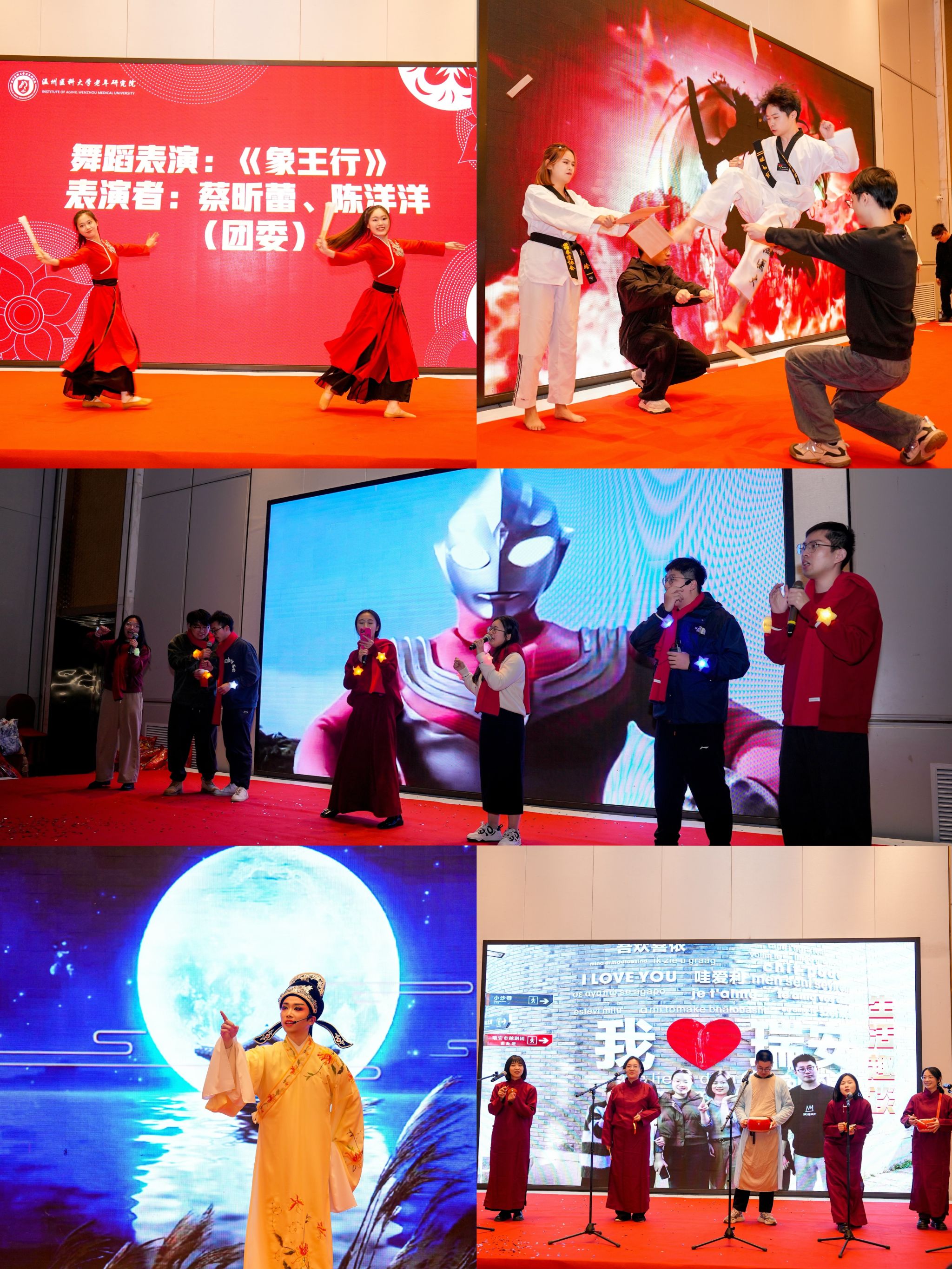 老年研究院以及我校团委、跆拳道协会的老师和同学们也为大家带来精彩的表演,展现我校和我院师生在科研工作之余多才多艺的一面,为表彰大会带来热闹欢快的氛围。