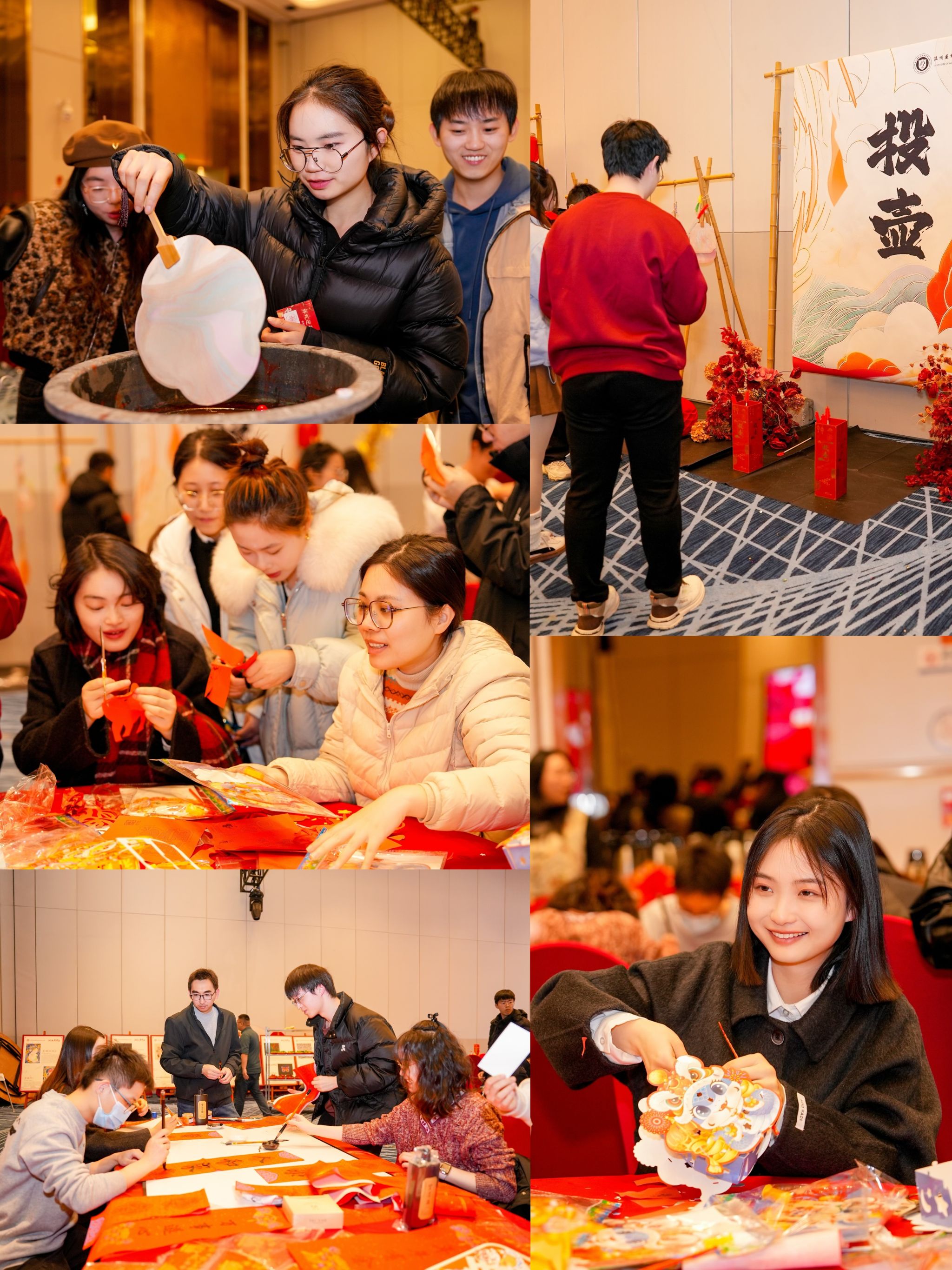 值此岁终年末,为了让我院师生体验到喜气洋洋的过年氛围,在表彰大会前,我们举办了趣味横生的新春游园活动。活动包含新年照拍摄、投壶、写对联、漆扇、剪纸、做灯笼,老师和同学们欢聚一堂,热情参与,体现了老院大家庭的活力与温暖。