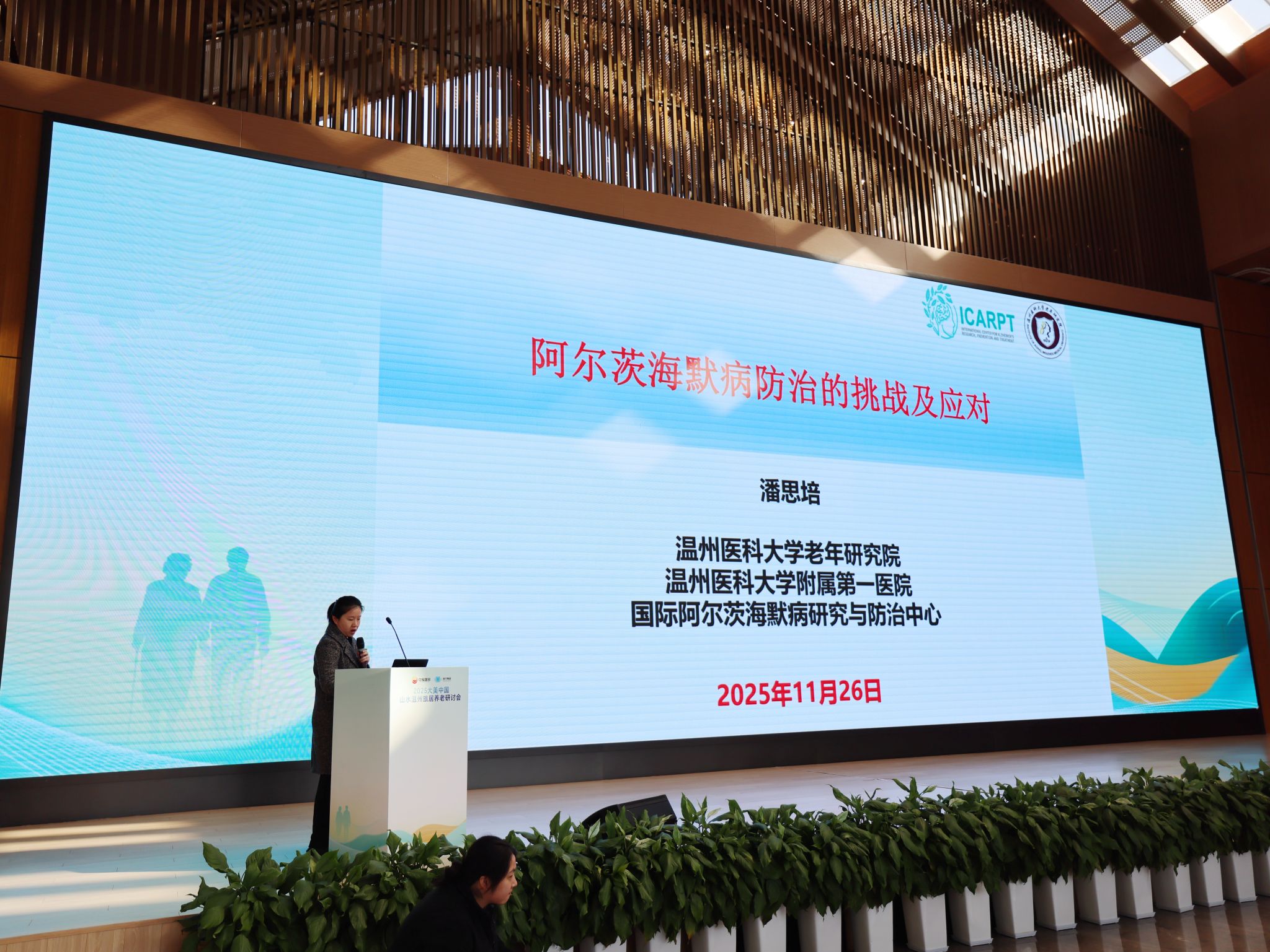 2025年11月26日,温州医科大学老年研究院博士后、国际阿尔茨海默病研究与防治中心副主任医师潘思培在瓯江红党建人才综合体为民政部、公安部委、事业单位及军队的老干部带来“阿尔茨海默病防治的挑战及应对”为题的专题报告。