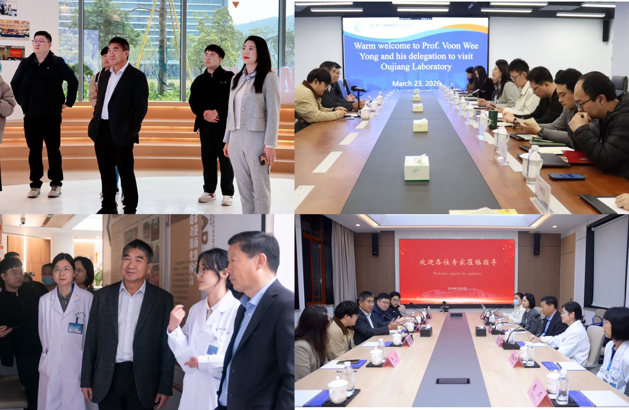 交流期间,Voon Wee Yong院士一行先后参观了老年研究院实验室、温州医科大学生物医药科研楼公共实验平台。