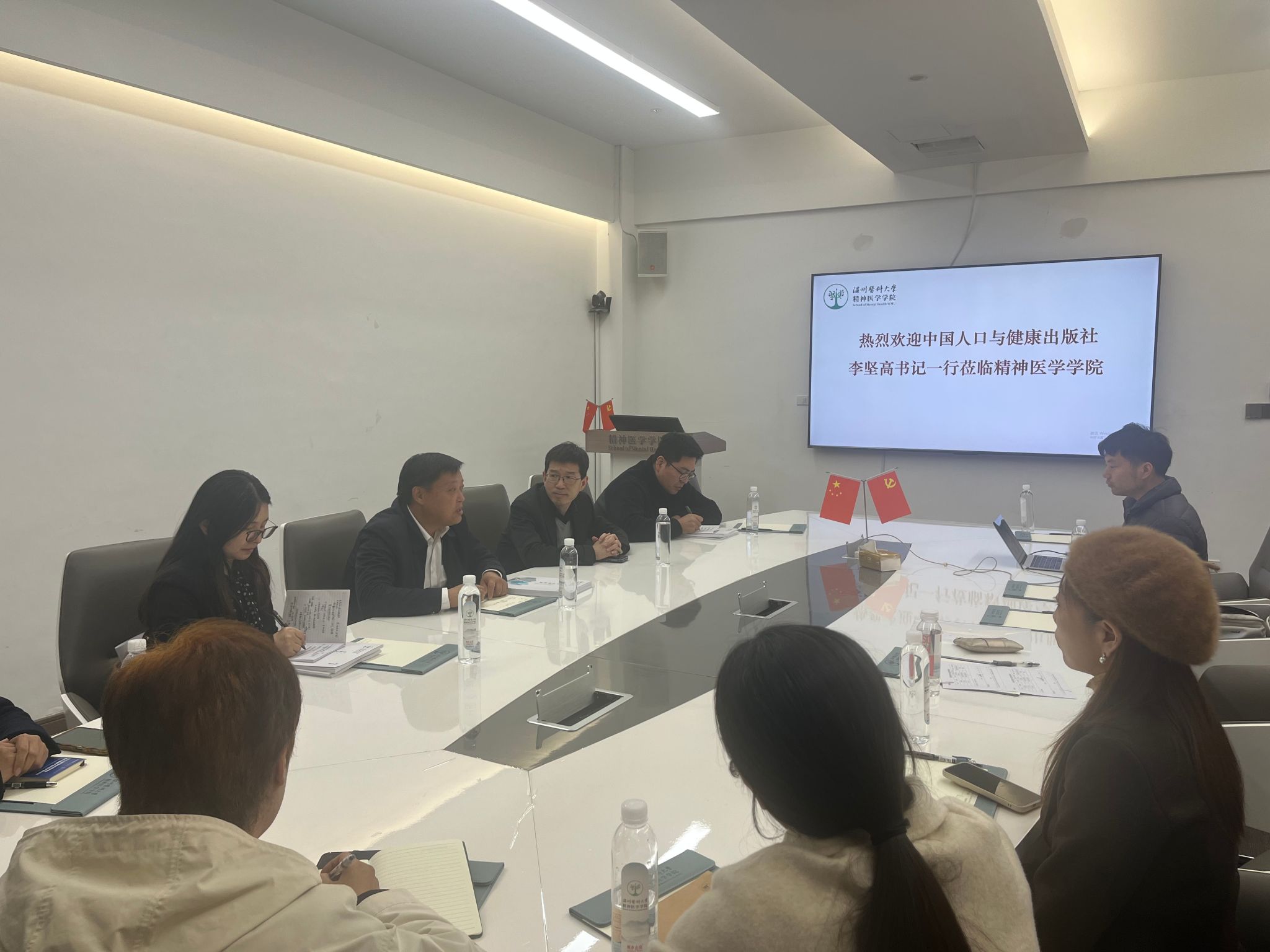 李坚高社长一行在结束对我院的访问后,前往温州医科大学精神医学学院进行交流,并出席了专题座谈会。会上,双方围绕老年医学教材的系统编写、内容开发及相关事项进行了深入探讨。