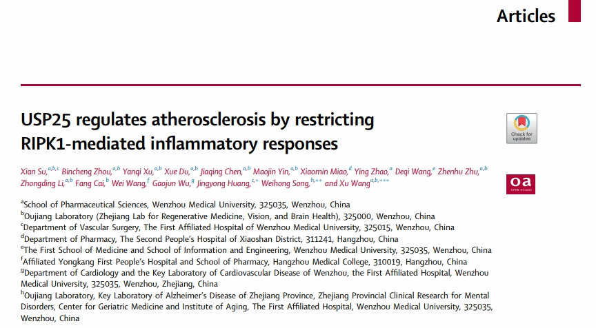 宋伟宏、王旭eBioMedicine发文:USP25 regulates atherosclerosis by restricting RIPK1-mediated inflammatory responses