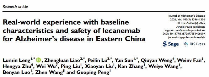 王贞Journal of Alzheimers Disease发文:Real-world experience with baseline characteristics and safety of lecanemab for Alzheimer's disease in Eastern China