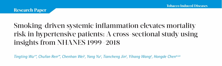 吴婷婷Tobacco Induced Diseases发文:Smoking-driven systemic inflammation elevates mortality risk in hypertensive patients: A cross-sectional study using insights from NHANES 1999-2018